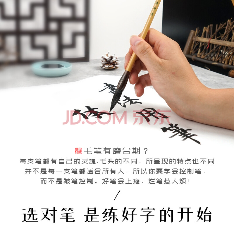 商品相册: 一得阁毛笔兼毫初学者软笔书法小楷笔文房四宝笔墨纸砚行书标准用笔第