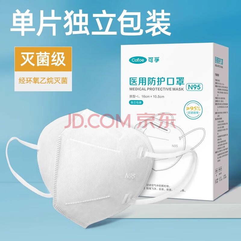 商品相册:可孚N95医用防护口罩3d立体白一次性医疗级别时尚独立包装无菌型30只第1张/共3
