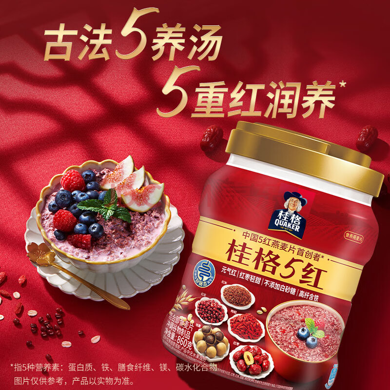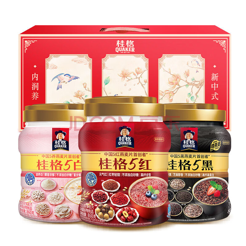 商品相册:桂格5养燕麦片礼盒860克*3 5黑+5红+5白添加黑芝麻送礼佳品送长辈父母第