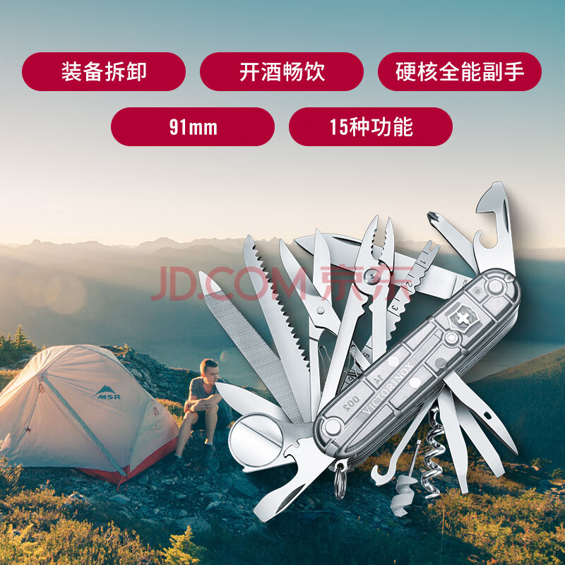 商品相册:维氏瑞士军刀都市猎人91mm户外刀具折叠刀防身小刀1.3713.T7透明银第