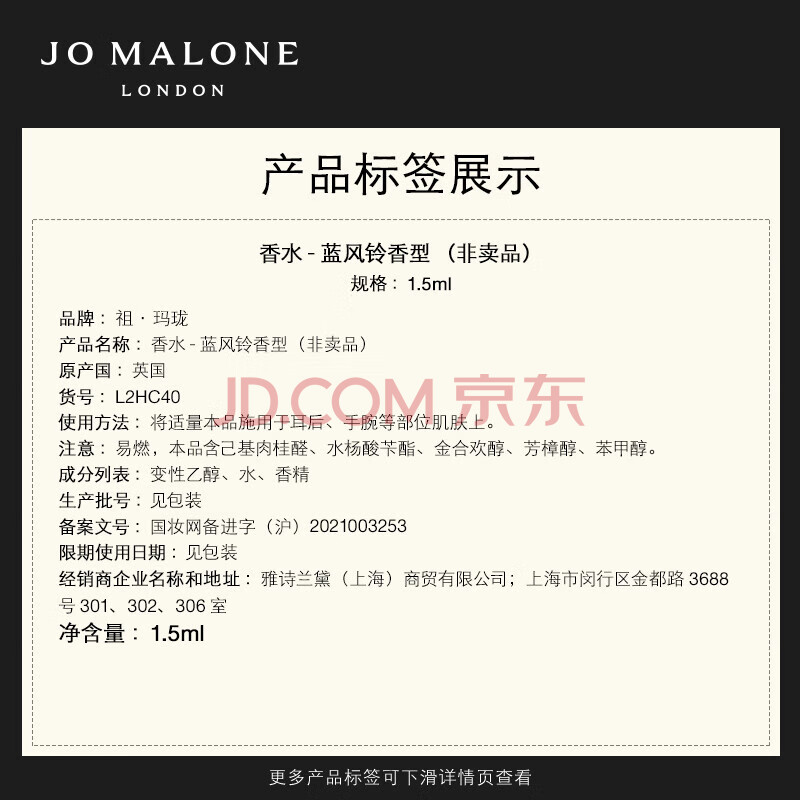 商品相册:祖玛珑【PLUS专享试用】明星香氛体验礼(蓝风铃1.5ml)+20元回购券 小样第