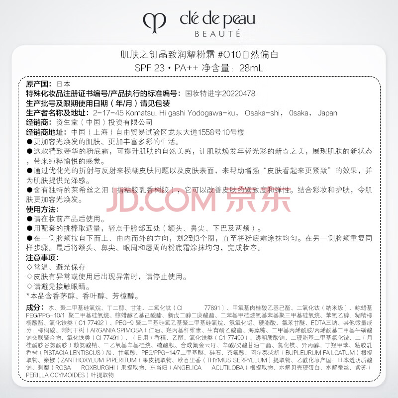 商品相册:肌肤之钥(CPB)【达人专享】晶钻粉霜28mL#O10自然偏白紧实饱满生日礼物送女友第