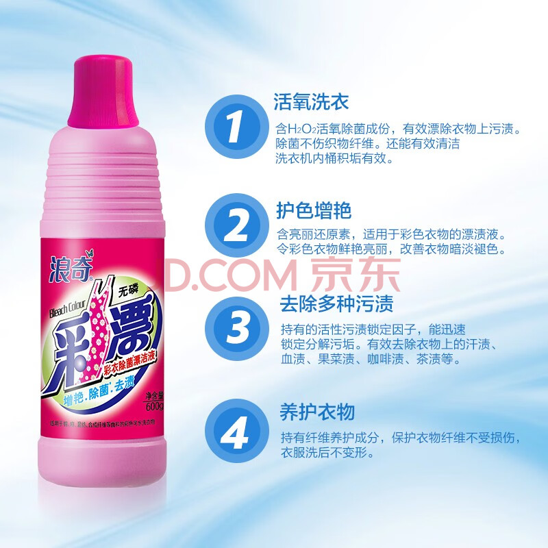 商品相册:浪奇彩漂液600g彩色衣物漂渍清洁漂白还原活氧去霉去黄热销商品第