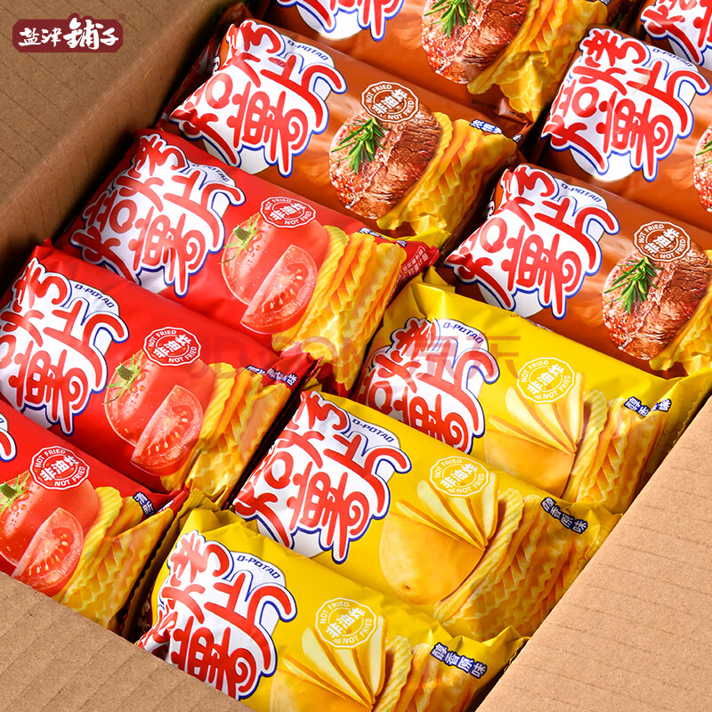 商品相册:盐津铺子薯片混合3味490g14包烘焙非油炸0反式脂肪酸休闲零食整箱礼盒第