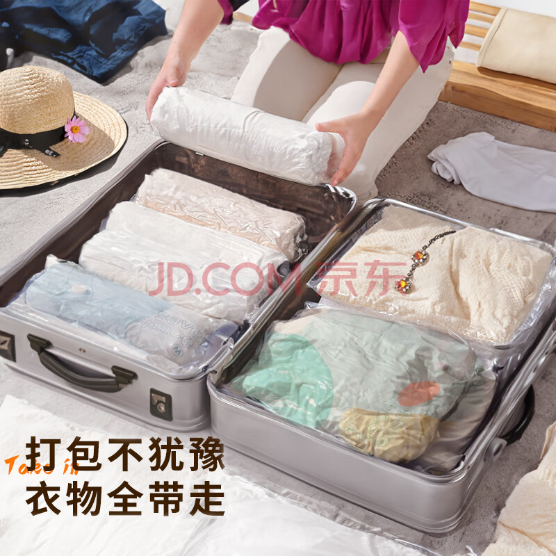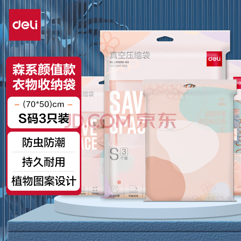 商品相册:得力(deli)抽气款真空压缩袋 被子衣服旅行收纳袋植物图案 S码3个装 LM300第