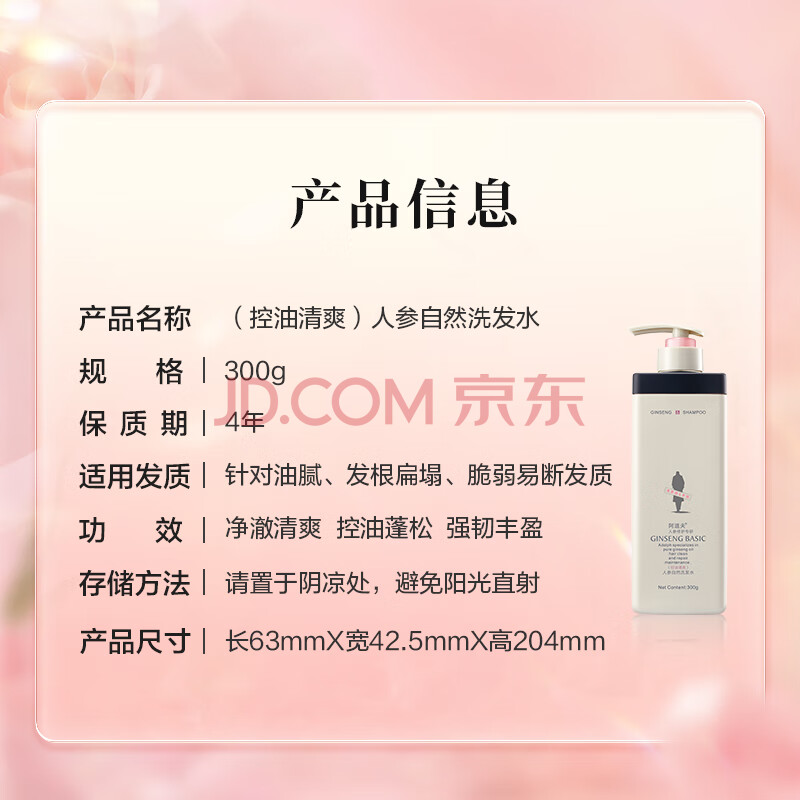 商品相册:阿道夫人参控油清爽洗发水300g 控油持久蓬松洗头膏男女士专用第