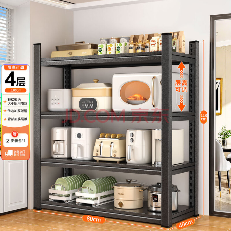 商品相册:佳帮手【谢霆锋推荐】厨房置物架微波炉收纳架多功能烤箱锅架储物柜层架第