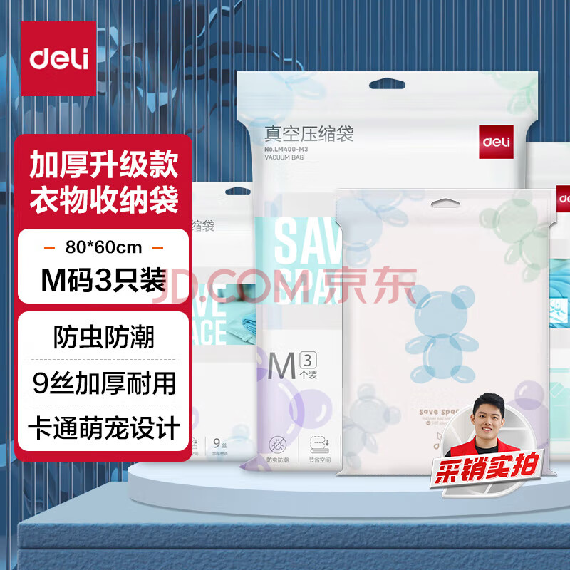 商品相册:得力(deli)抽气款真空压缩袋 衣服被子旅行收纳 加厚升级 M码3个装 LM400第