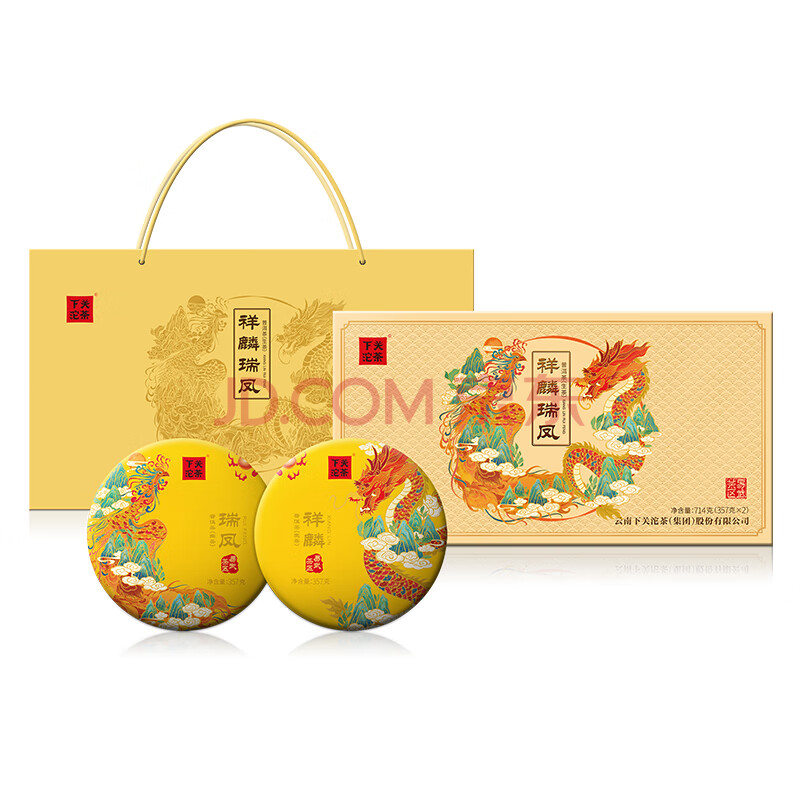 商品相册:下关沱茶茶叶普洱生茶易武茶区2022年龙凤呈祥祥麟瑞凤礼盒 双饼714g礼盒第
