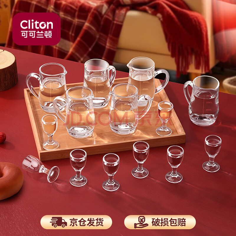 商品相册:CLITON白酒杯分酒器套装一口杯高脚玻璃小酒杯带把分酒壶烈酒杯6壶8杯第