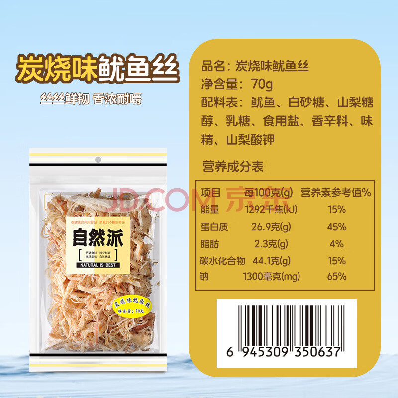 商品相册:自然派炭烧鱿鱼丝70g*2袋微辣即食深海鱿鱼海味休闲零食办公室零食第