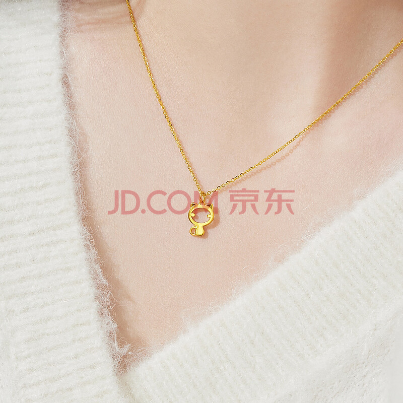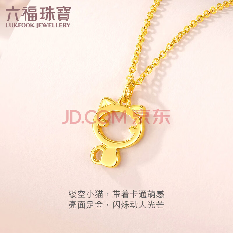 商品相册:六福珠宝 黄金项链镂空小猫咪足金礼物女 计价 HEGTBN0001 约3.39克第