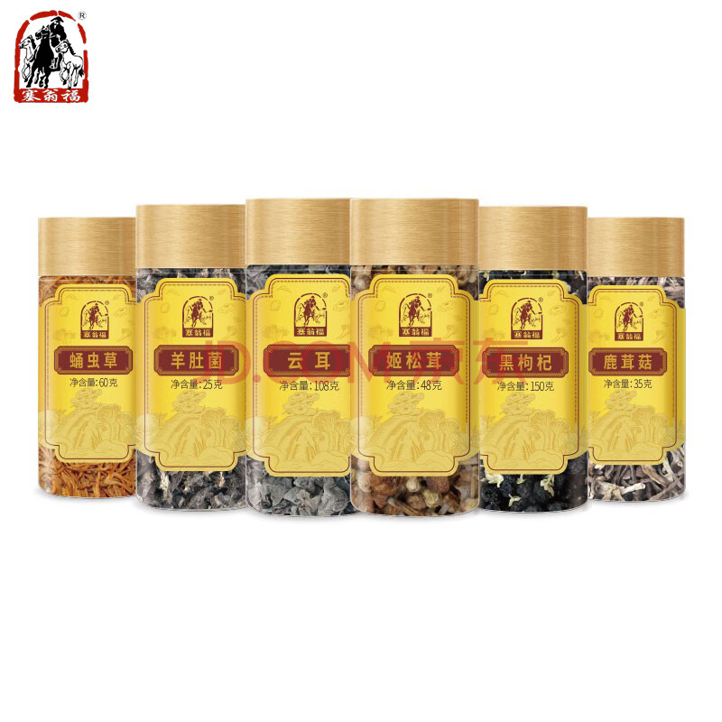 商品相册:塞翁福幸福礼菌菇礼盒426克 云耳姬松茸羊肚菌蛹虫草鹿茸菇黑枸杞礼包第