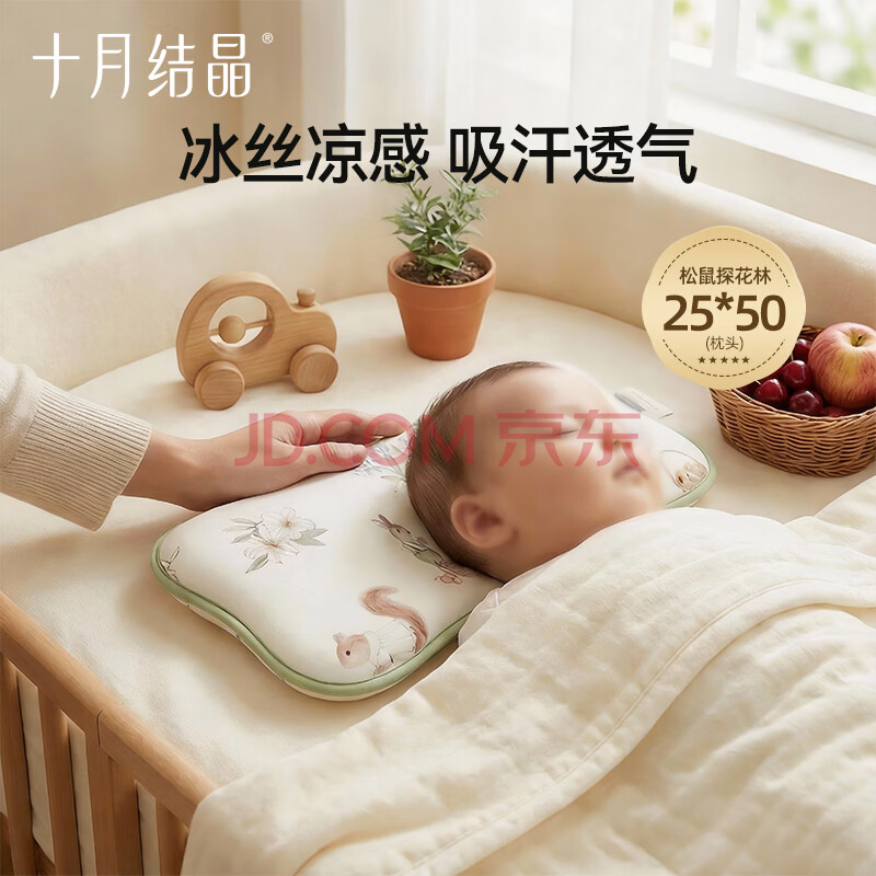 商品相册:十月结晶婴儿枕头夏季冰丝凉枕透气凉爽防多汗抑菌防螨 松鼠探花林第
