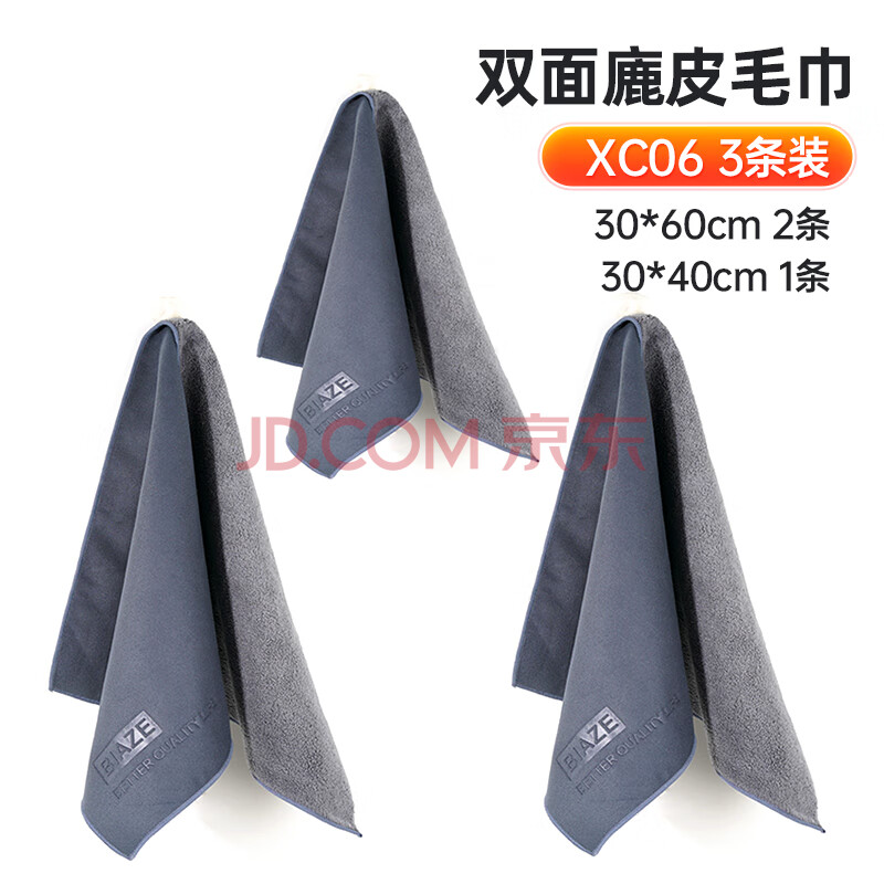 商品相册:毕亚兹 洗车毛巾擦车专用抹布汽车车用毛巾麂皮绒吸水不留痕抹大小3条装第