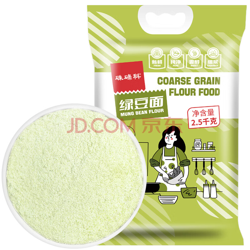 商品相册:硃碌科 绿豆面5斤袋装 东北纯绿豆粉 绿豆糕杂粮煎饼烘焙杂粮面原料第