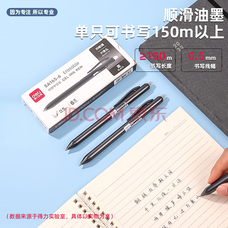 商品相册:得力(deli)【热门商品】时尚可擦按动中性笔0.5mm子弹头黑色 热可擦魔力学生水笔 6支/盒SA165-6第