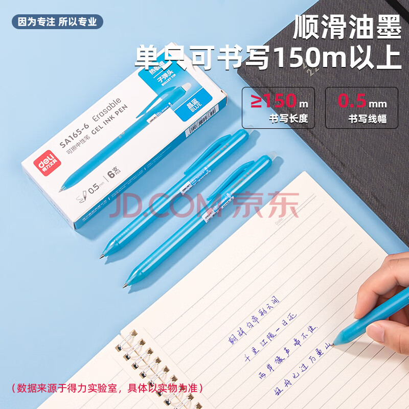 商品相册:得力(deli)【热门商品】时尚可擦按动中性笔 0.5mm子弹头热可擦魔力学生水笔 晶蓝色6支/盒SA165-6第