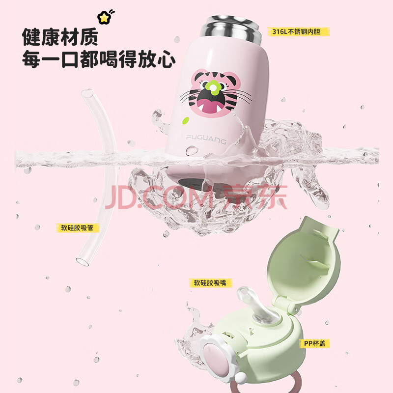 商品相册:富光儿童保温杯316L不锈钢水杯壶吸管杯男女小学生宝宝喝水弹盖杯子第