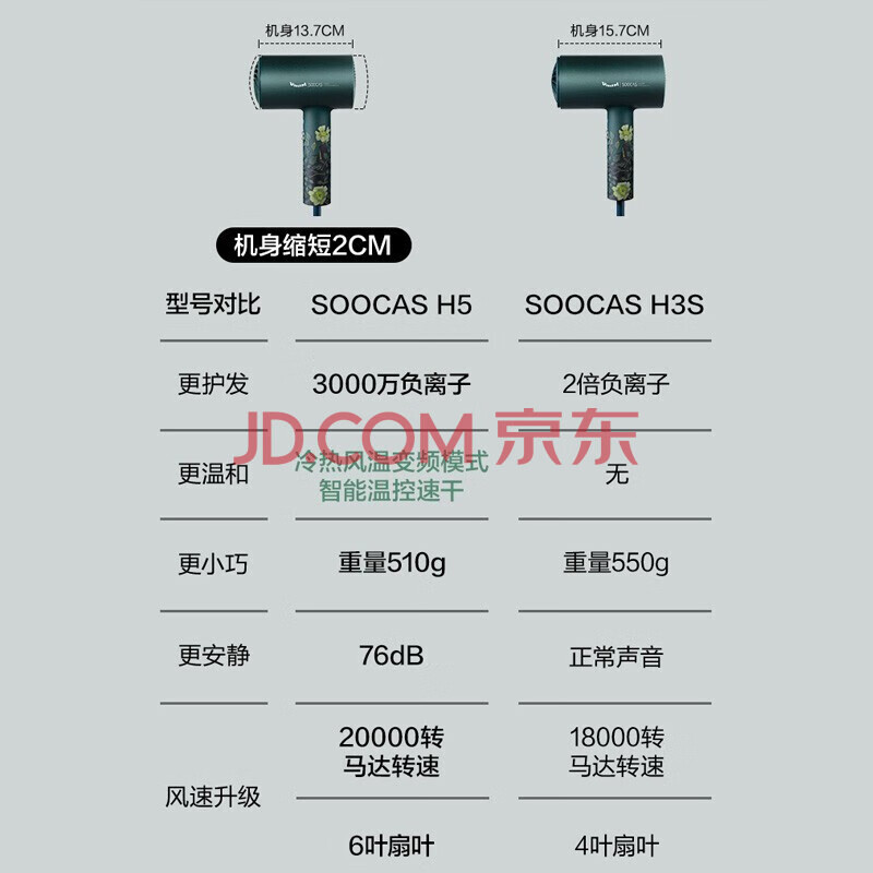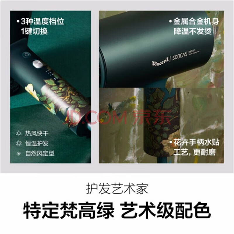 商品相册:素士电吹风机家用大功率大风力负离子护发吹风筒 H5梵高绿第