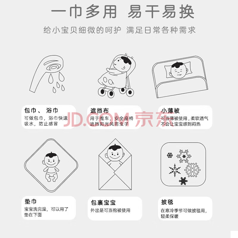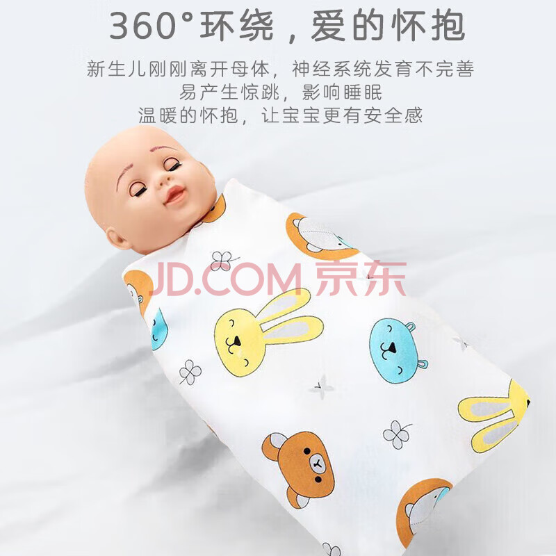 商品相册:9i9婴儿包巾纯棉防惊跳襁褓巾新生儿产房包单宝宝抱被2条装动物85cm第