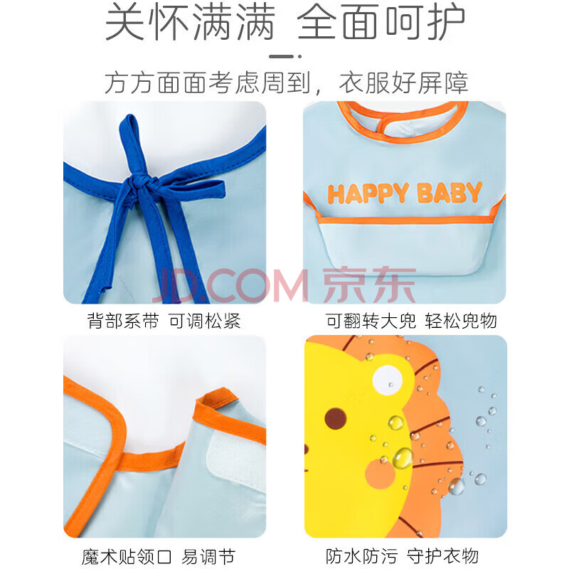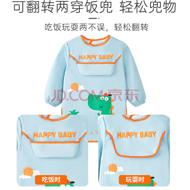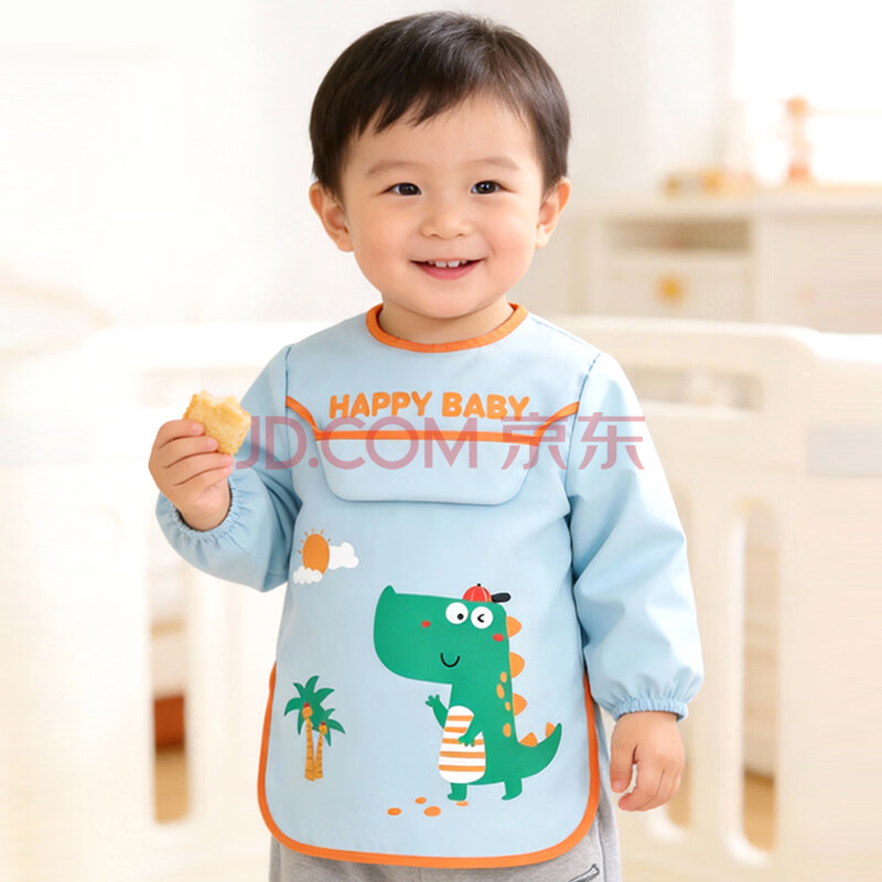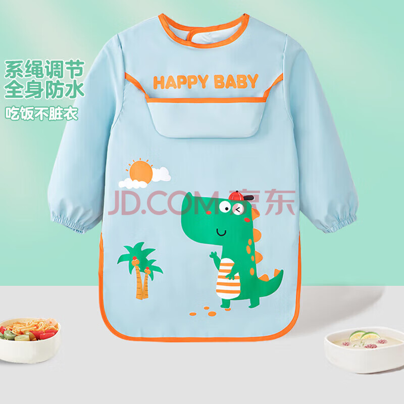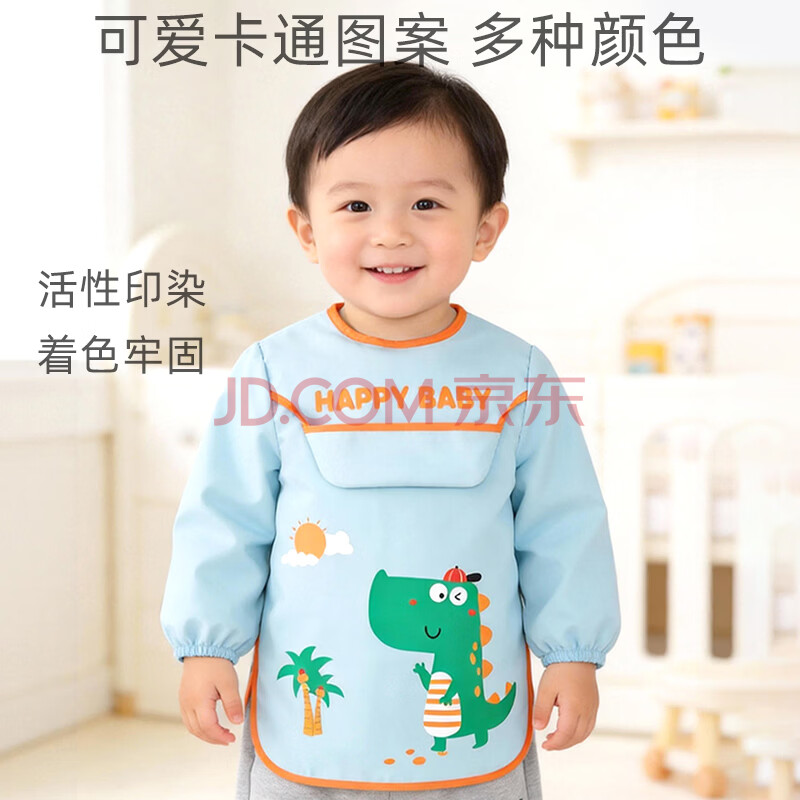 商品相册:9i9宝宝吃饭罩衣长袖防水防脏婴儿童围裙画画衣魔术贴A257恐龙第