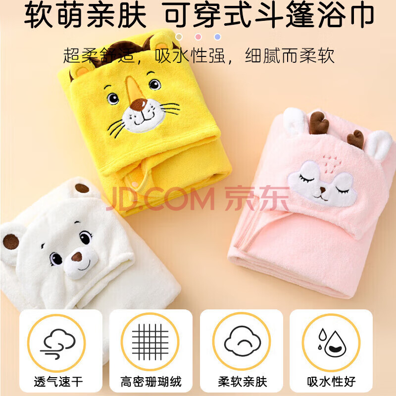商品相册:9i9宝宝浴巾加厚婴儿童斗篷浴袍珊瑚绒洗澡毛巾吸水A275粉小兔第