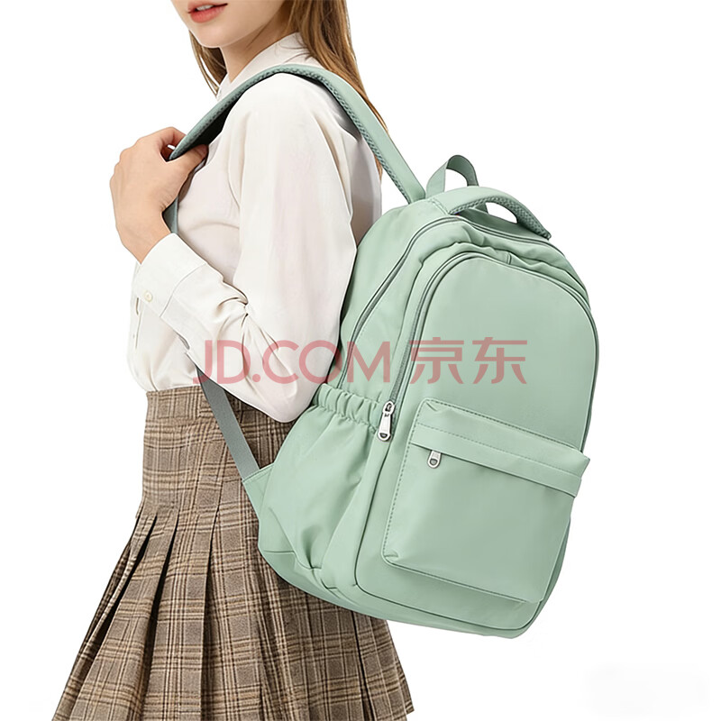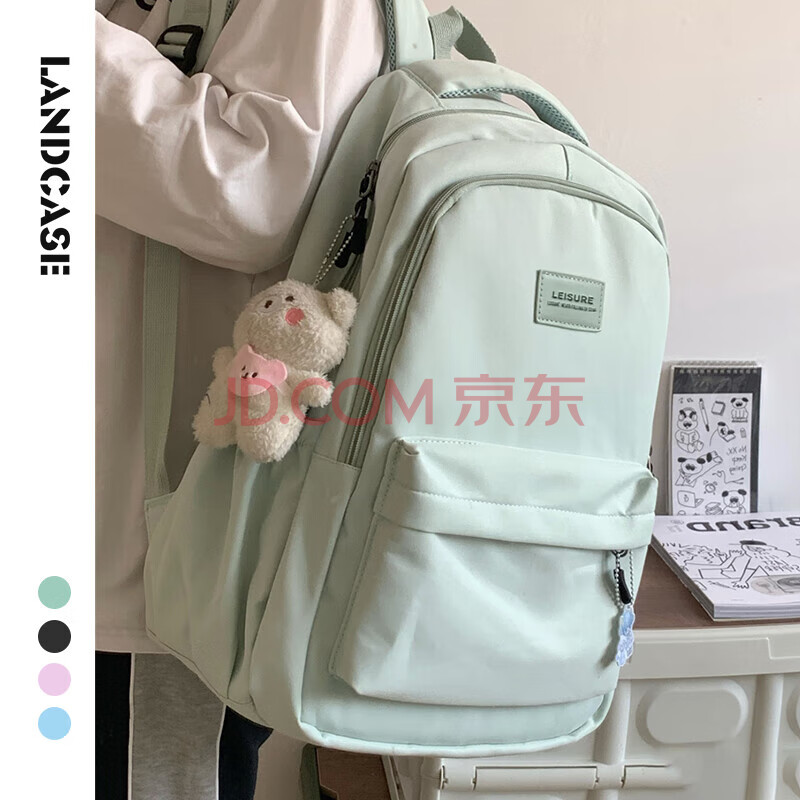 商品相册:Landcase书包初中生女高中大学生校园高颜值背包双肩包男电脑包 1606浅绿第