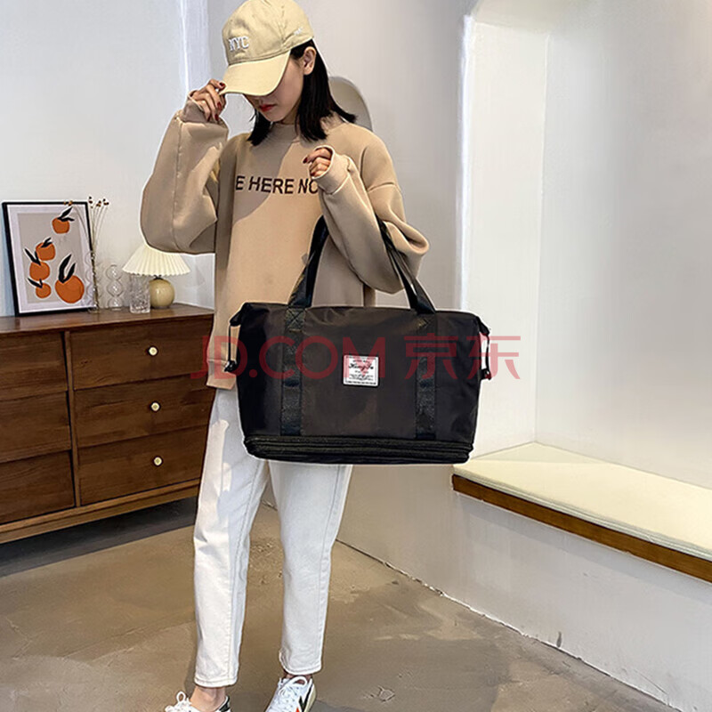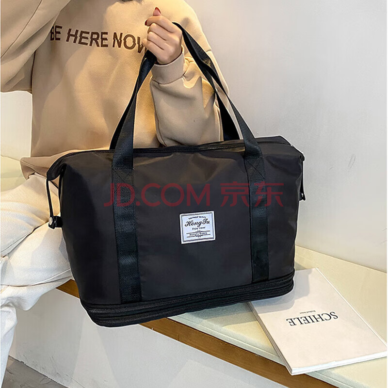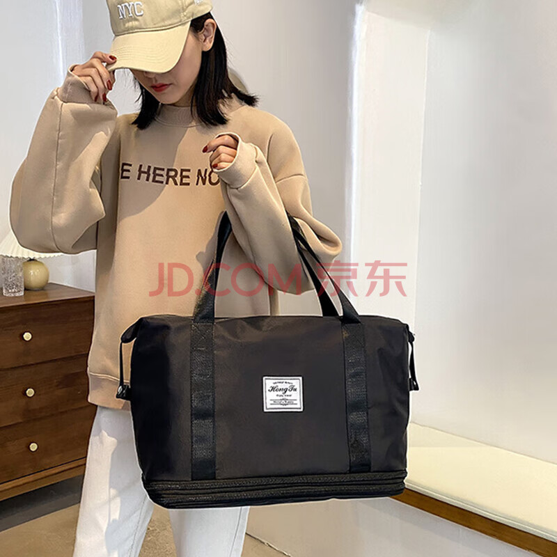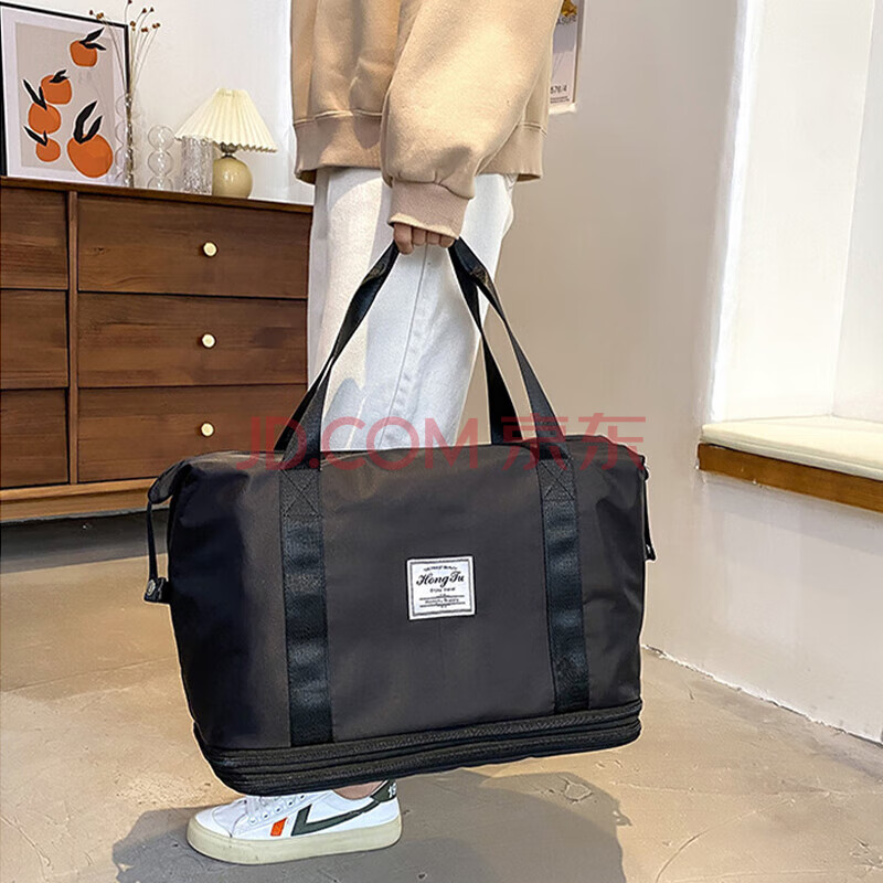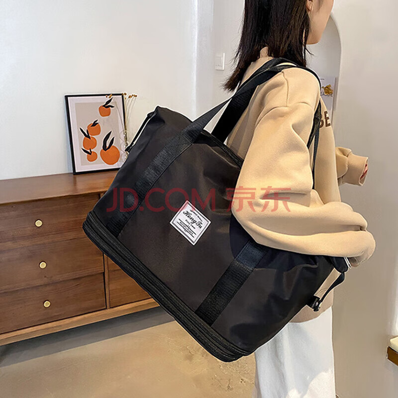 商品相册:Landcase 旅行包女手提包运动健身游泳背包扩容短途旅行李包袋 5102黑色第