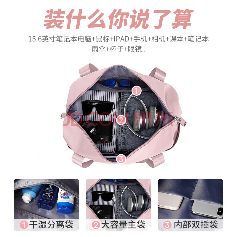 商品相册:Landcase旅行包女手提包运动健身游泳背包多功能短途旅行李包袋 5102粉色第