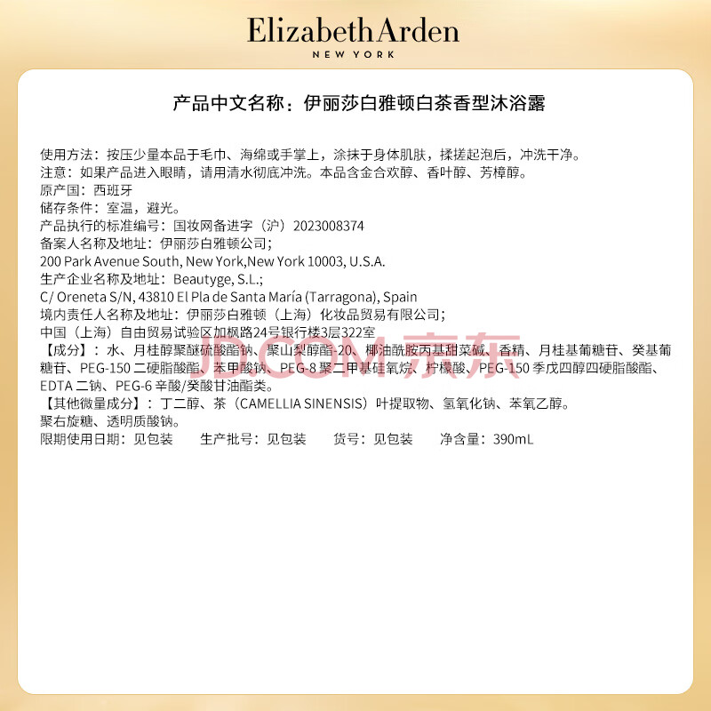 商品相册:伊丽莎白雅顿白茶身体霜400ML+白茶沐浴露390ML+护手霜30ml*2套装礼物送朋友第