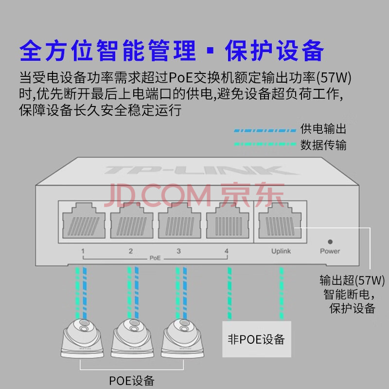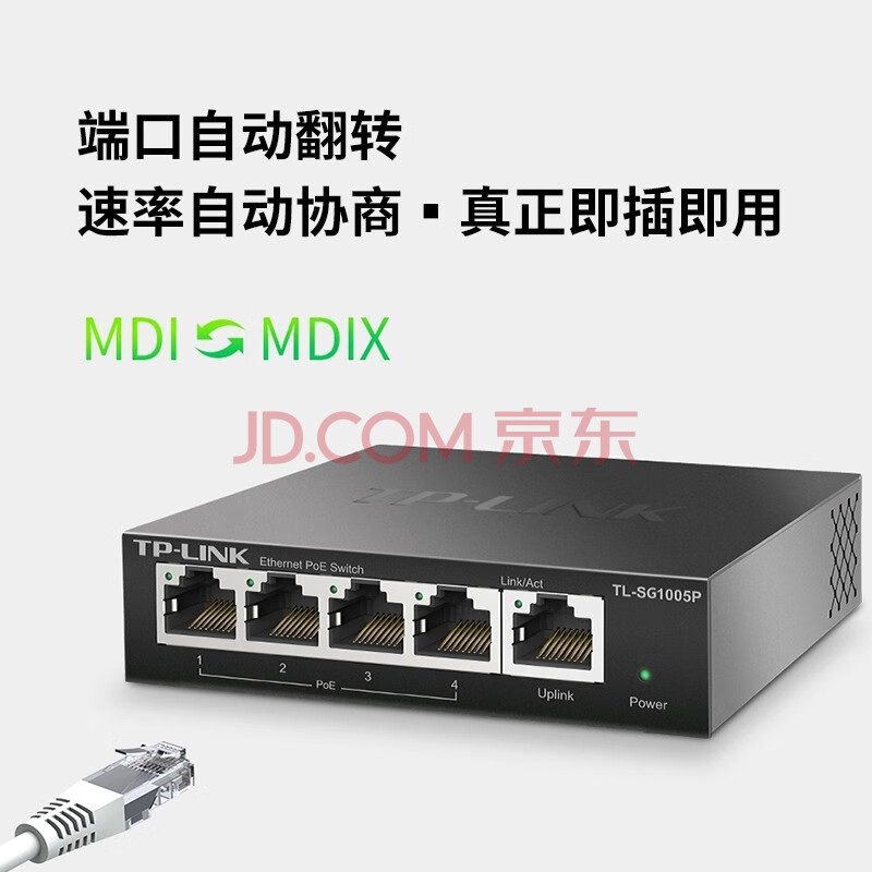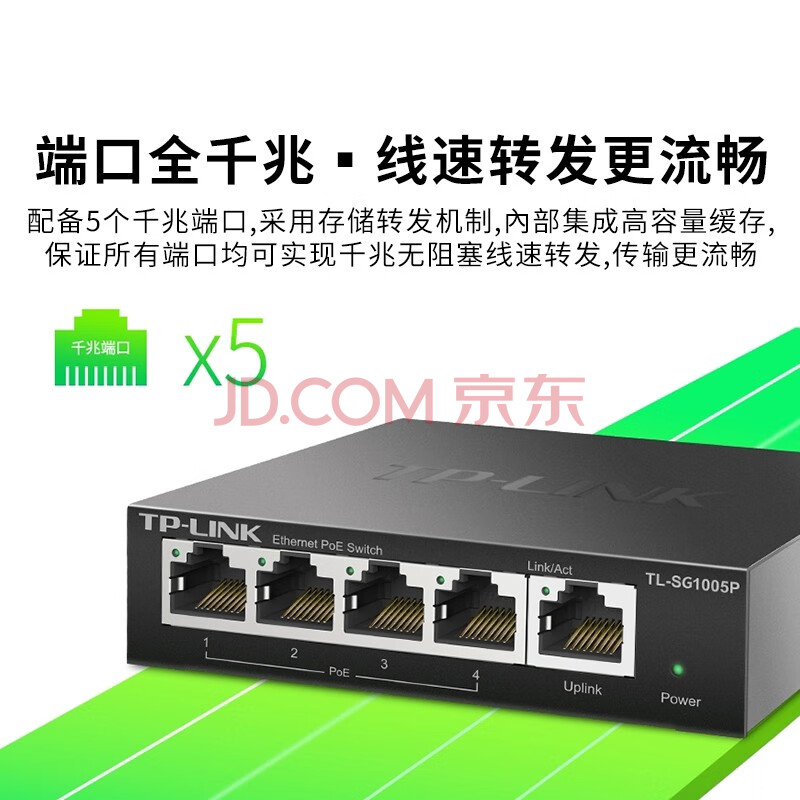 商品相册:普联 5口千兆PoE交换机 4口PoE非网管交换机监控网络网线分线器 企业级交换器分流器 TL-SG1005P第