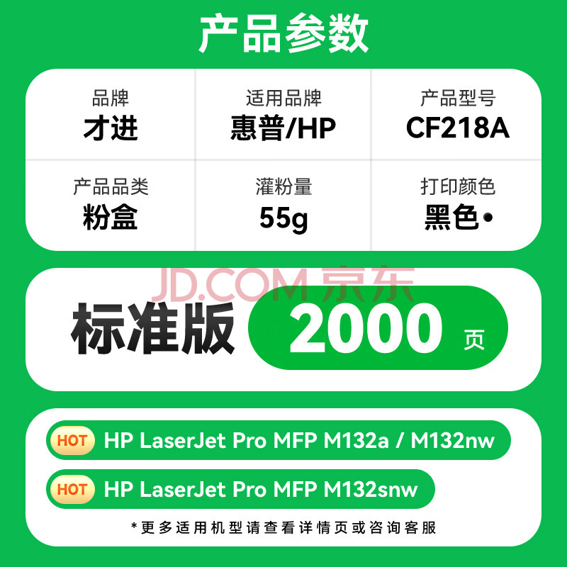 商品相册:才进适用惠普M132a硒鼓LaserJet Pro MFP M132fw/fn/fp墨盒M104a/w打印机HP18a碳粉CF218a粉盒M132nw M132snw第