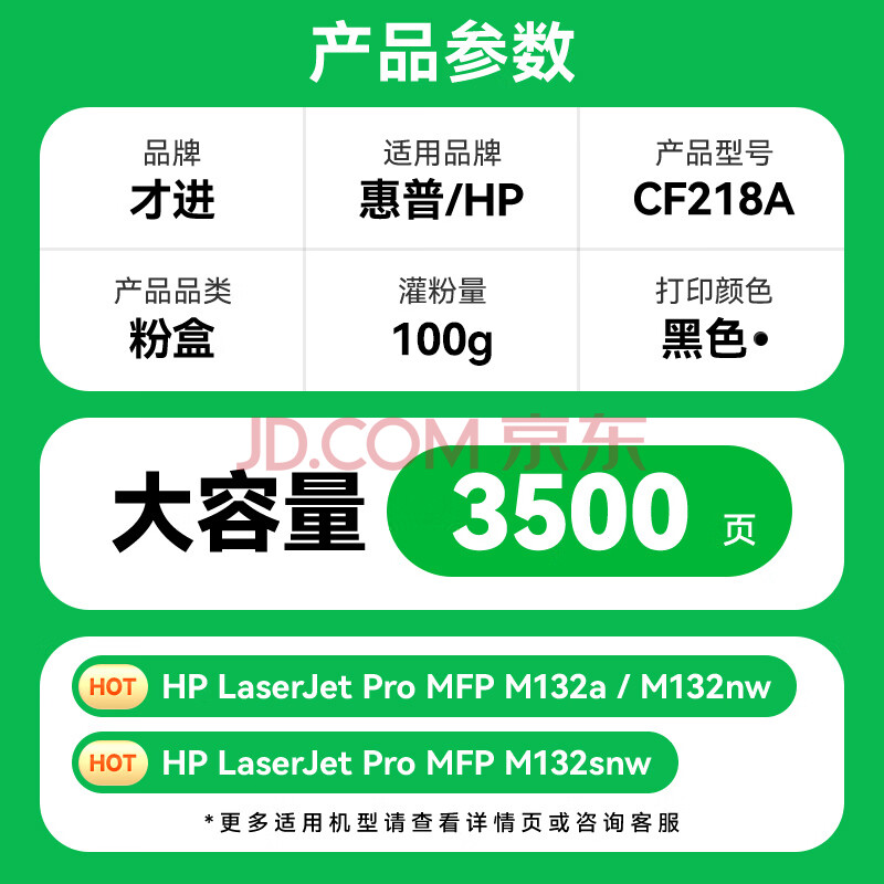 商品相册:才进适用惠普M132a硒鼓LaserJet Pro MFP M132fw/fn/fp墨盒M104a/w打印机HP18a碳粉CF218a粉盒M132nw M132snw第