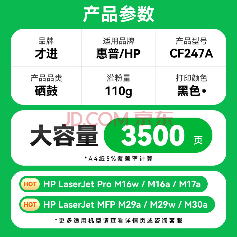 商品相册:才进适用惠普CF247A硒鼓M30w 47X打印机粉盒M30a M17w M17a M29w M29a M16w M16a复印一体机Laserjet Pro MFP第