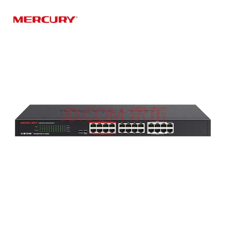 商品相册:水星(MERCURY)商用24口千兆以太网端口企业级网络高速稳定即插即用安防监控专用PoE交换机 水星POE供电交换机第