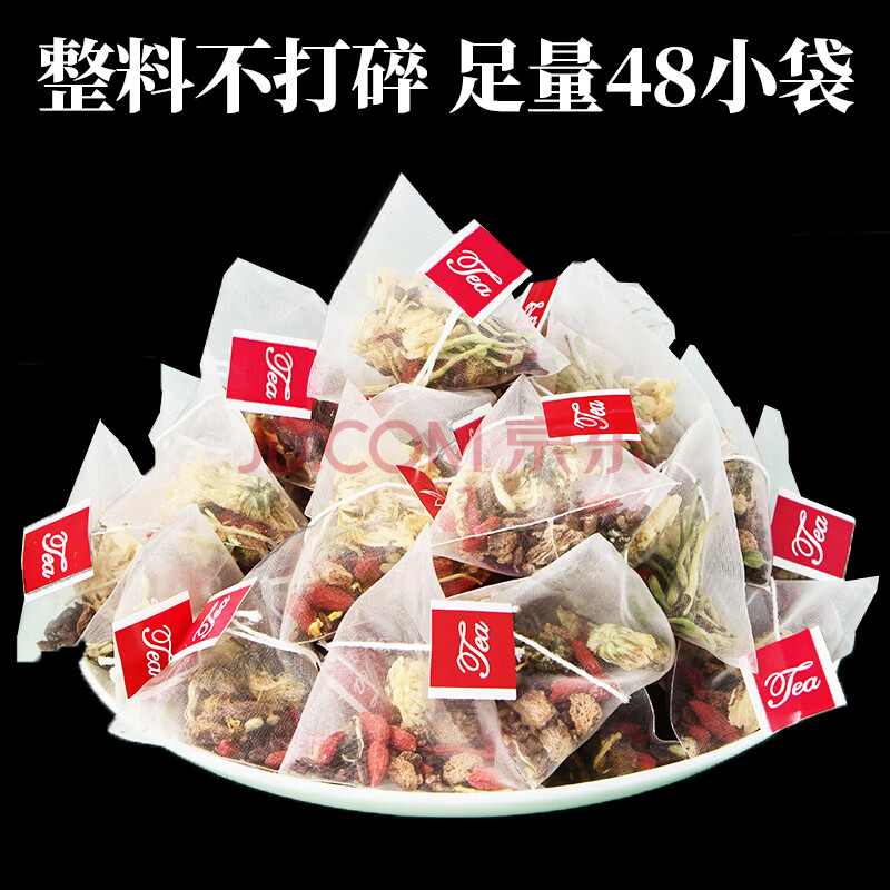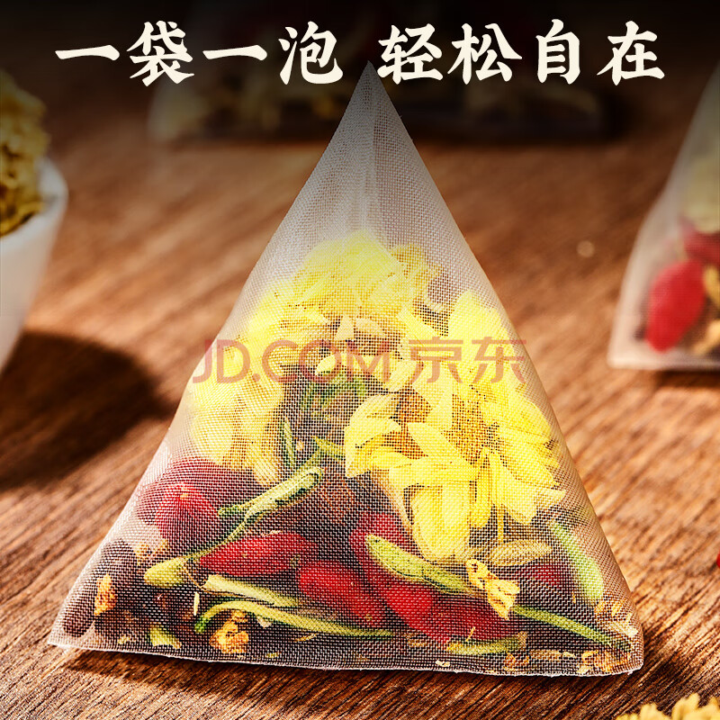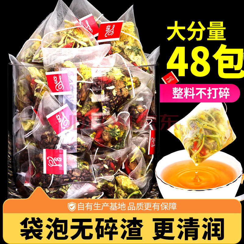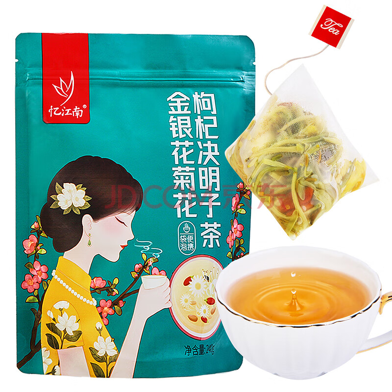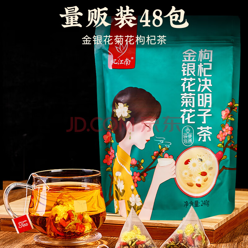 商品相册:忆江南养生茶金银花菊花决明子茶48包泡水花茶枸杞熬夜肝三角袋包240克第