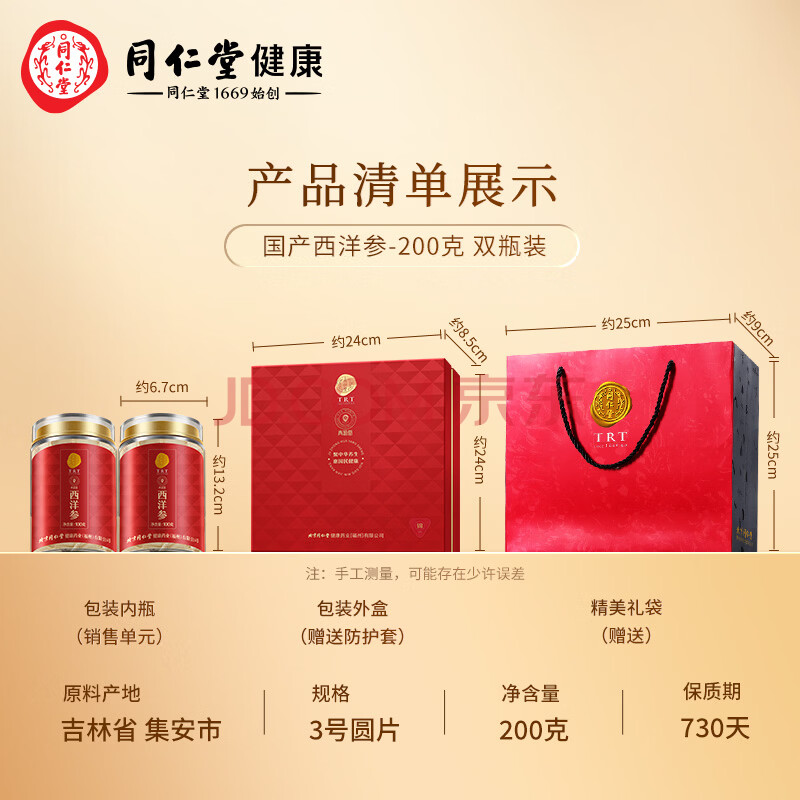 商品相册:同仁堂品牌 北京同仁堂西洋参片礼盒花旗参1.2-1.4cm200g送父母长辈补品第1张/共6