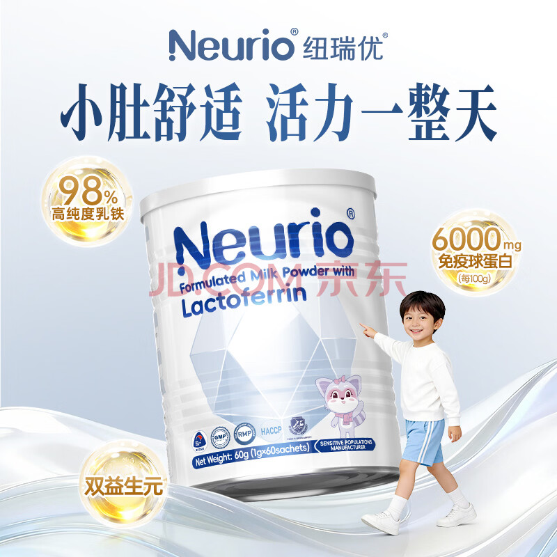 商品相册:纽瑞优(Neurio)乳铁蛋白白金版益生元护肠道60g第