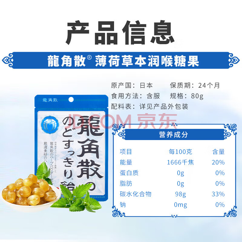 商品相册:龙角散薄荷草本糖果 经典原味 80g 清凉舒爽 薄荷糖第