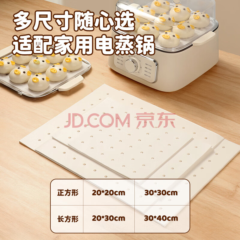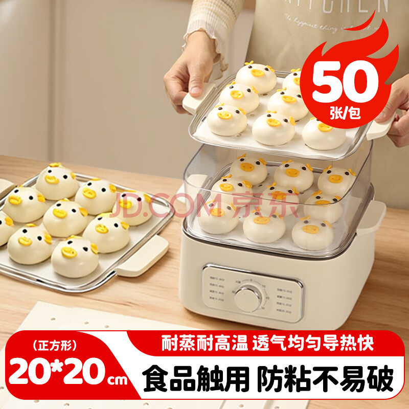 商品相册:美厨(maxcook)蒸笼纸包子垫纸蒸包子纸蒸笼屉纸一次性50张 正方形20cm MCPJ3935第1张/共8