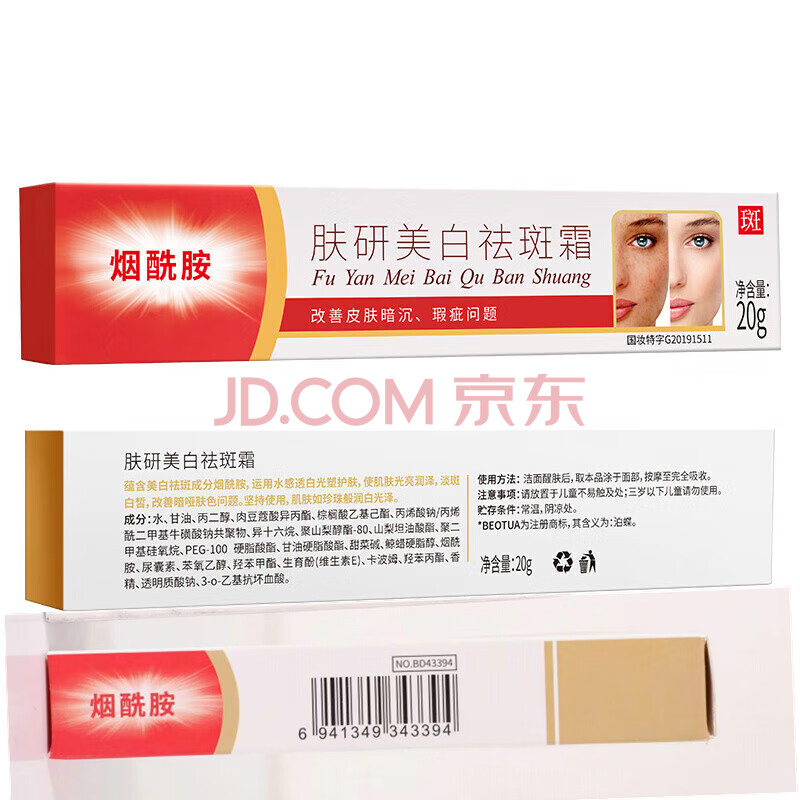 商品相册:泊蝶肤研美白祛斑霜乳液面霜烟酰胺淡斑淡化黑色素祛斑霜20g*4第