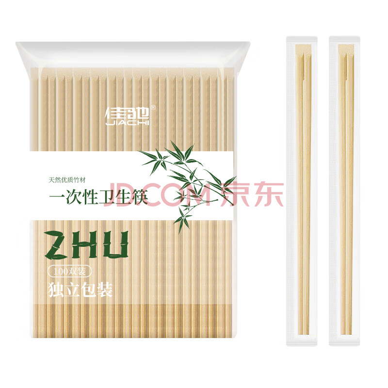 商品相册:佳驰 天削筷一次性加粗筷子100双 方便筷独立包装一次性碗筷餐具用品第