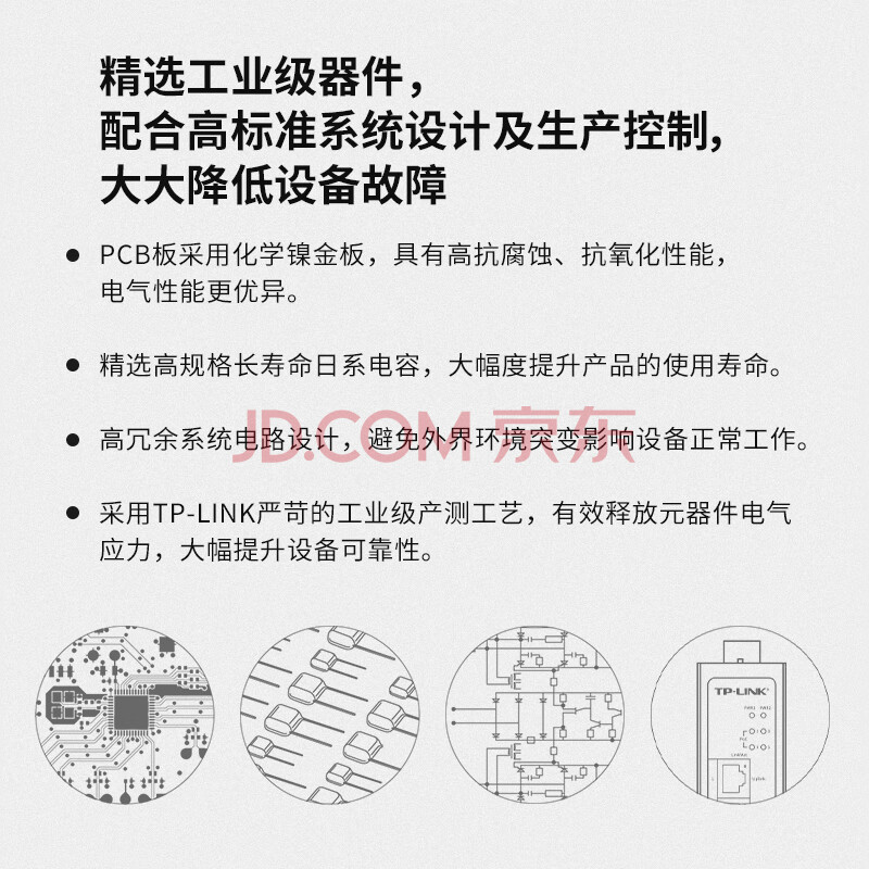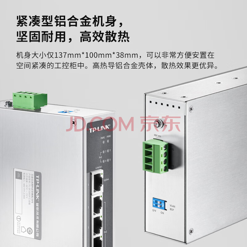 商品相册:普联(TP-LINK) 5口4口百兆poe工业级企业级以太网交换机 POE供电 TL-SF1005P工业级第