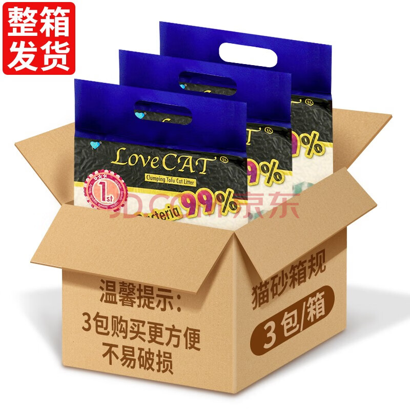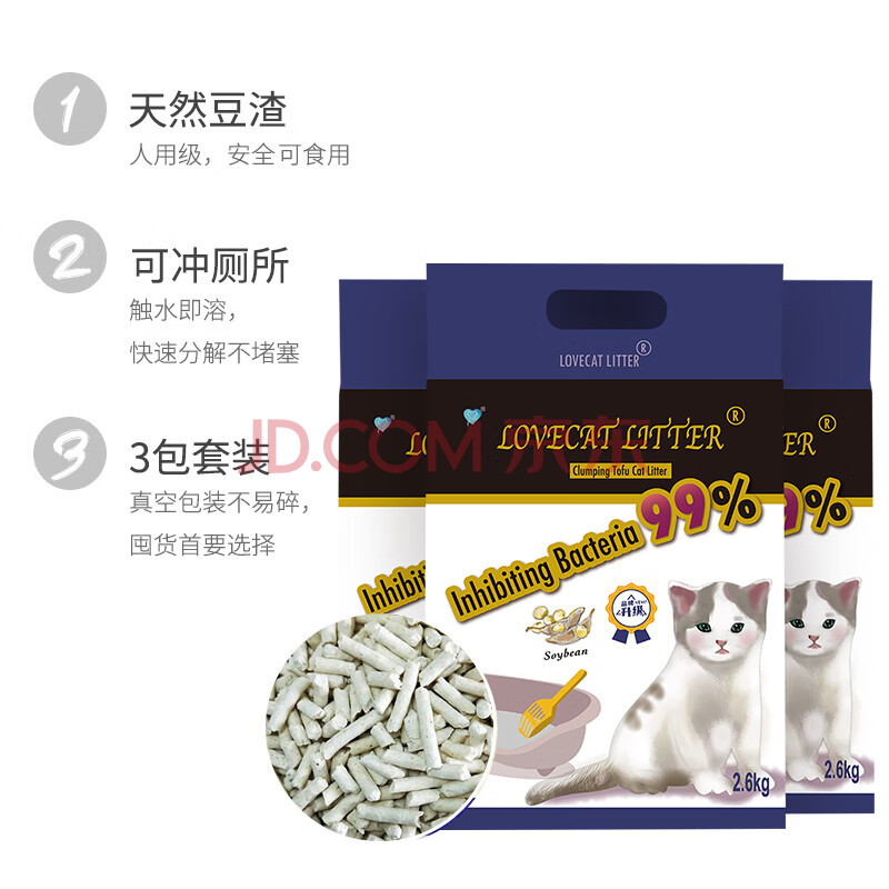 商品相册:lovecat litter原味豆腐猫砂2.6kg*3袋易结团可冲厕所猫咪用品2.0颗粒第