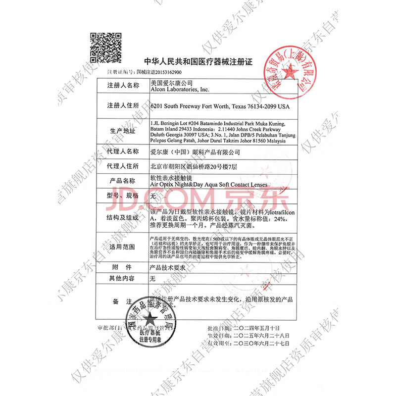 商品相册:爱尔康 水润日夜型隐形眼镜月抛 高透氧进口硅水凝胶 3片装 850度第1张/共1