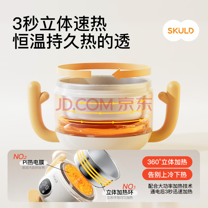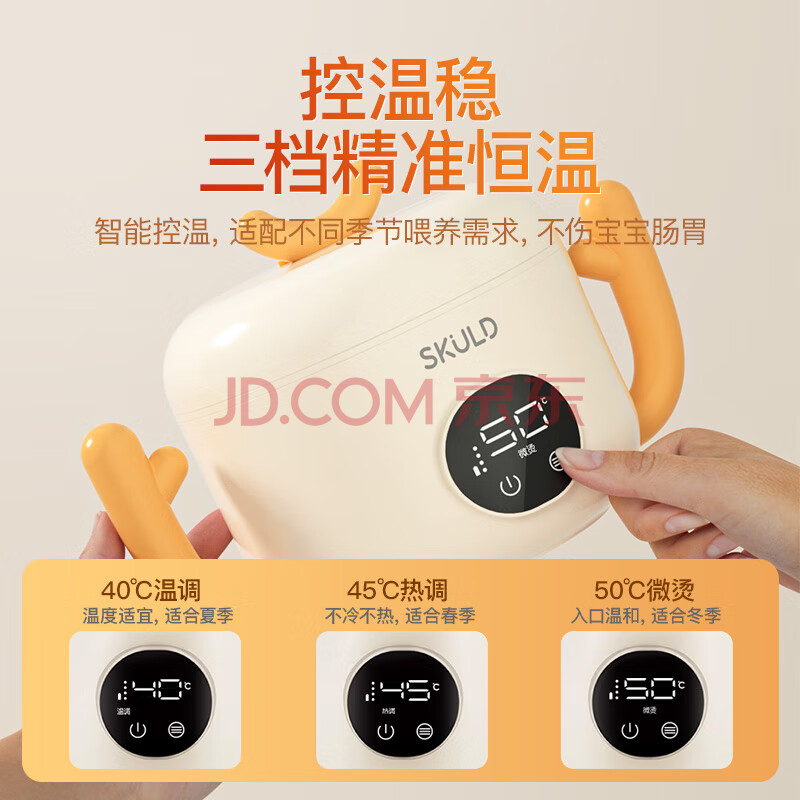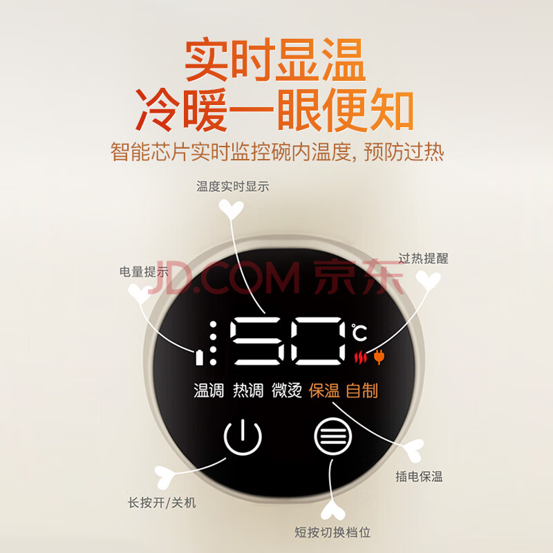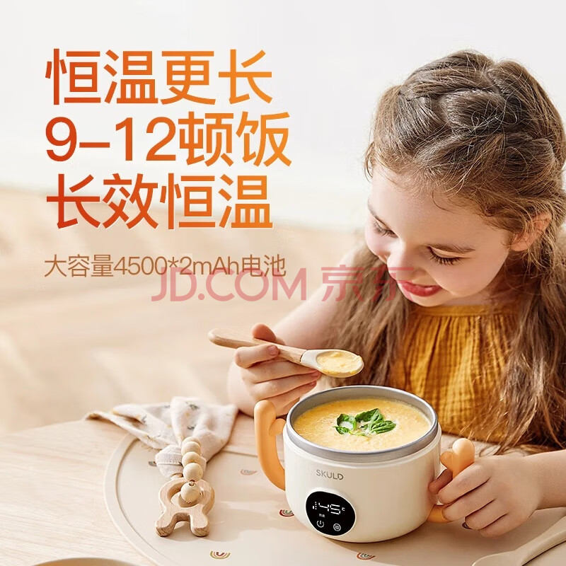 商品相册:SKULD 时蔻儿童智能恒温辅食碗K5保温碗免注水316L不锈钢饭盒宝宝碗第1张/共8
