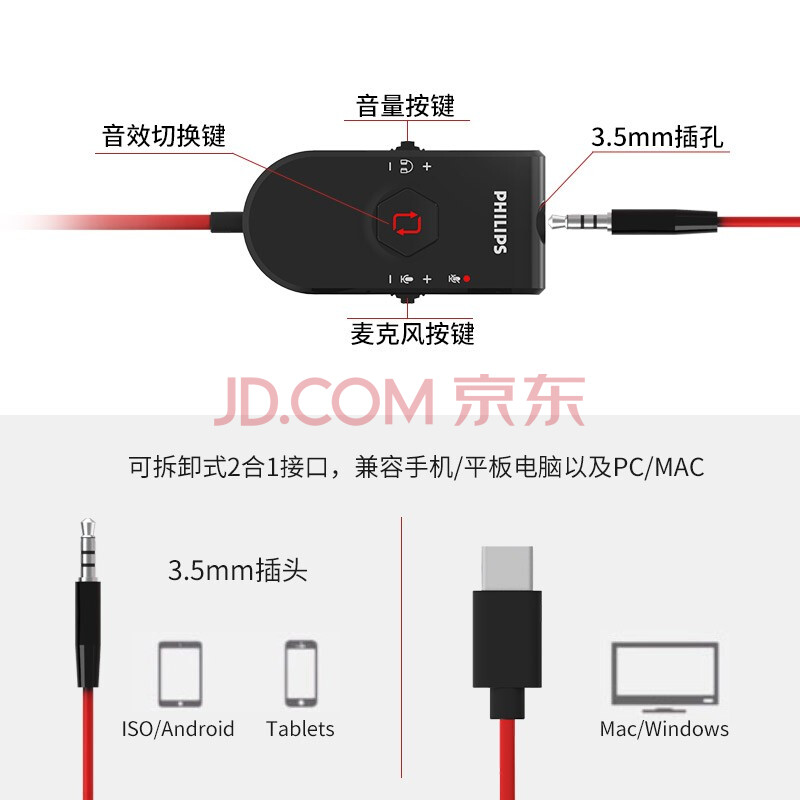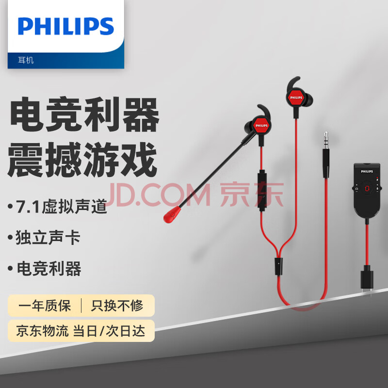 商品相册:飞利浦(PHILIPS)有线专业电竞手游游戏耳机TAG4115 独立声卡7.1声道带麦电脑手机耳麦type-c/3.5mm音频双接口 黑第