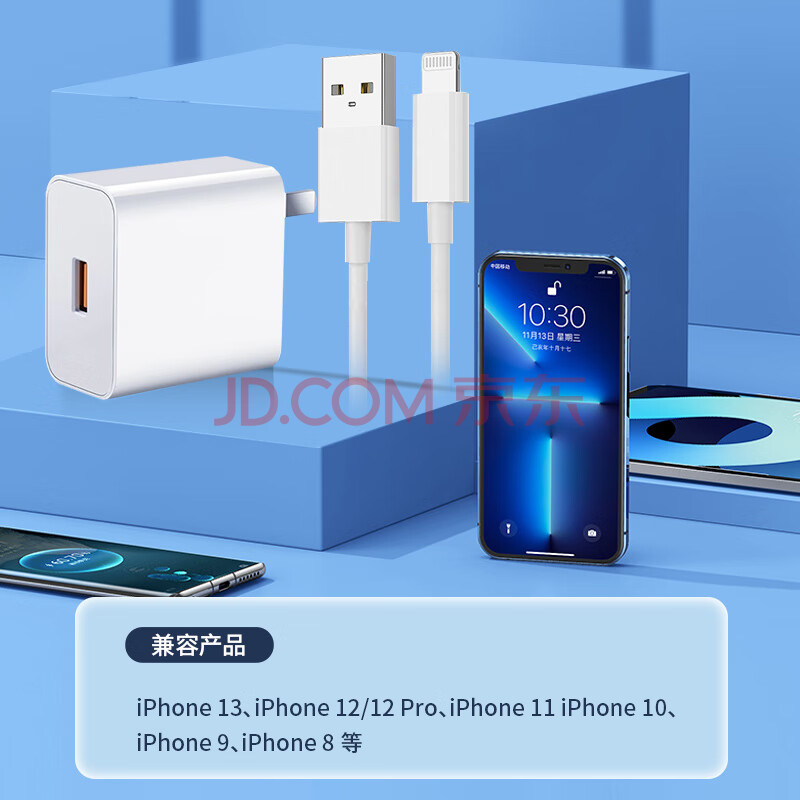 商品相册:维界 苹果充电器充电头套装苹果数据线适用于苹果20W快充头+苹果USB-C快充线2米标配第