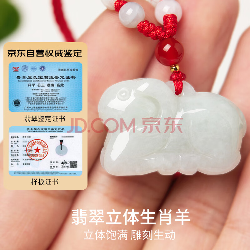 商品相册:曼丽翠翡翠生肖羊吊坠玉坠立体十二生肖项链男女款礼物附证书第